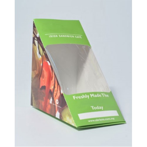 - Available in White or Brown board, they are designed to deliver maximum impact by offering large viewing windows for premium presentation. Sandwich Box can also be custom printed for superior brand promotion and greater shelf presence.